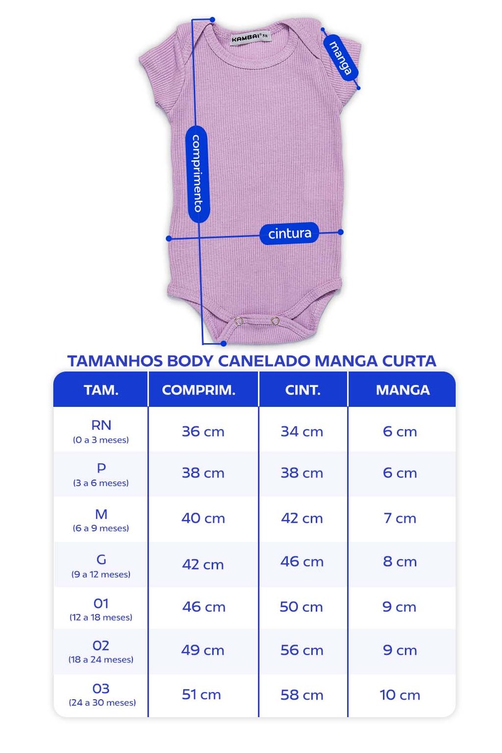 Body Bebê Manga Curta Canelado Cores