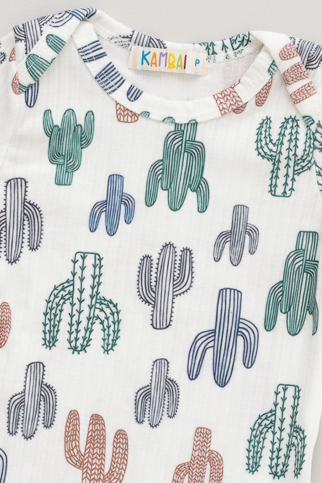Body Bebê Manga Curta Canelado Estampa Cactos