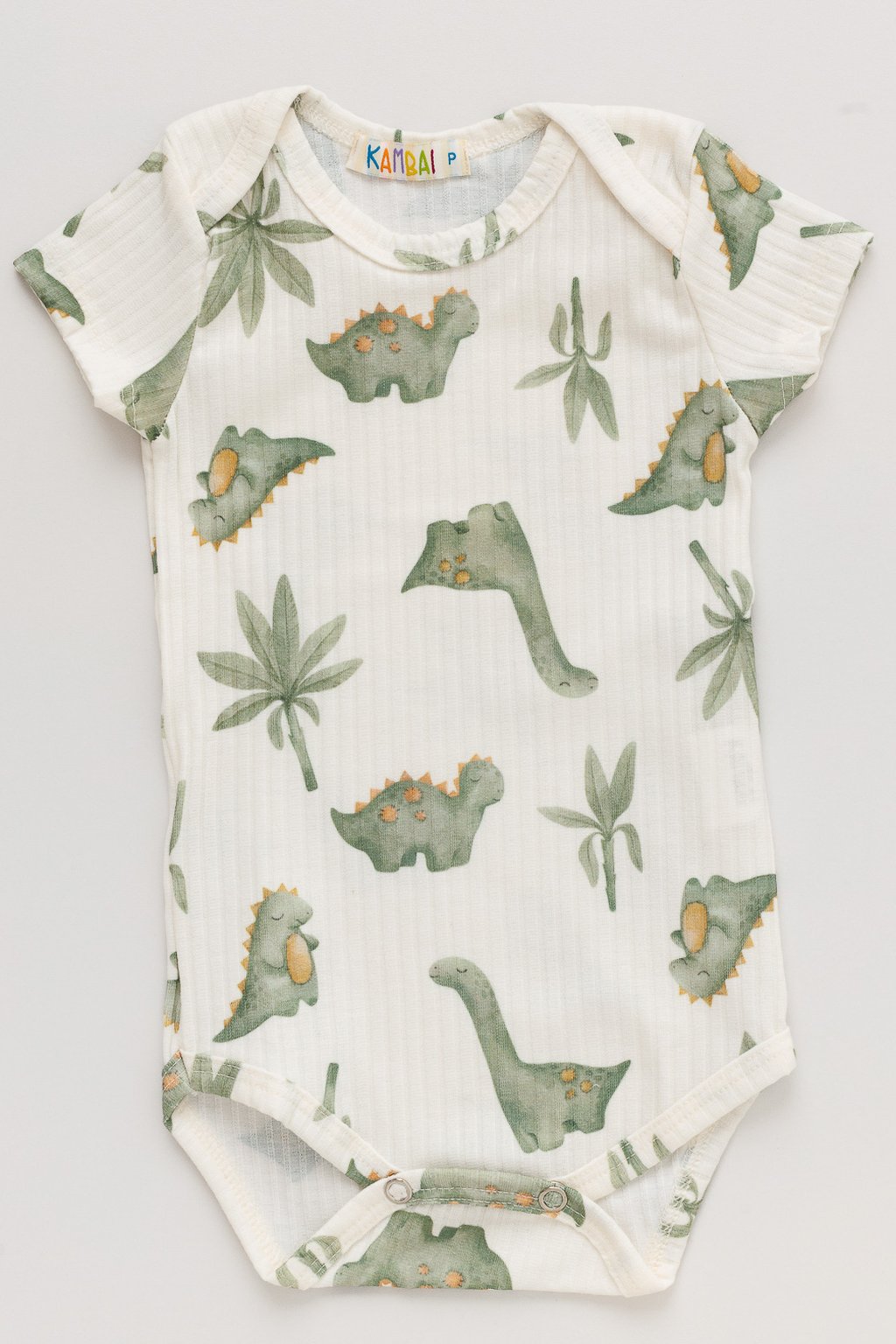 Body Bebê Manga Curta Canelado Estampa Dinossauro Tropical é indispensável no enxoval e acompanha o crescimento do bebê! Com modelagem confortável e tecido macio, permite que o neném fique livre para se movimentar e explorar tudo ao seu redor. A estampa lúdica e divertida desperta a curiosidade dos pequenos. Os botões entrepernas e a gola envelope são uma verdadeira "mão na roda" na hora de trocar o baby.