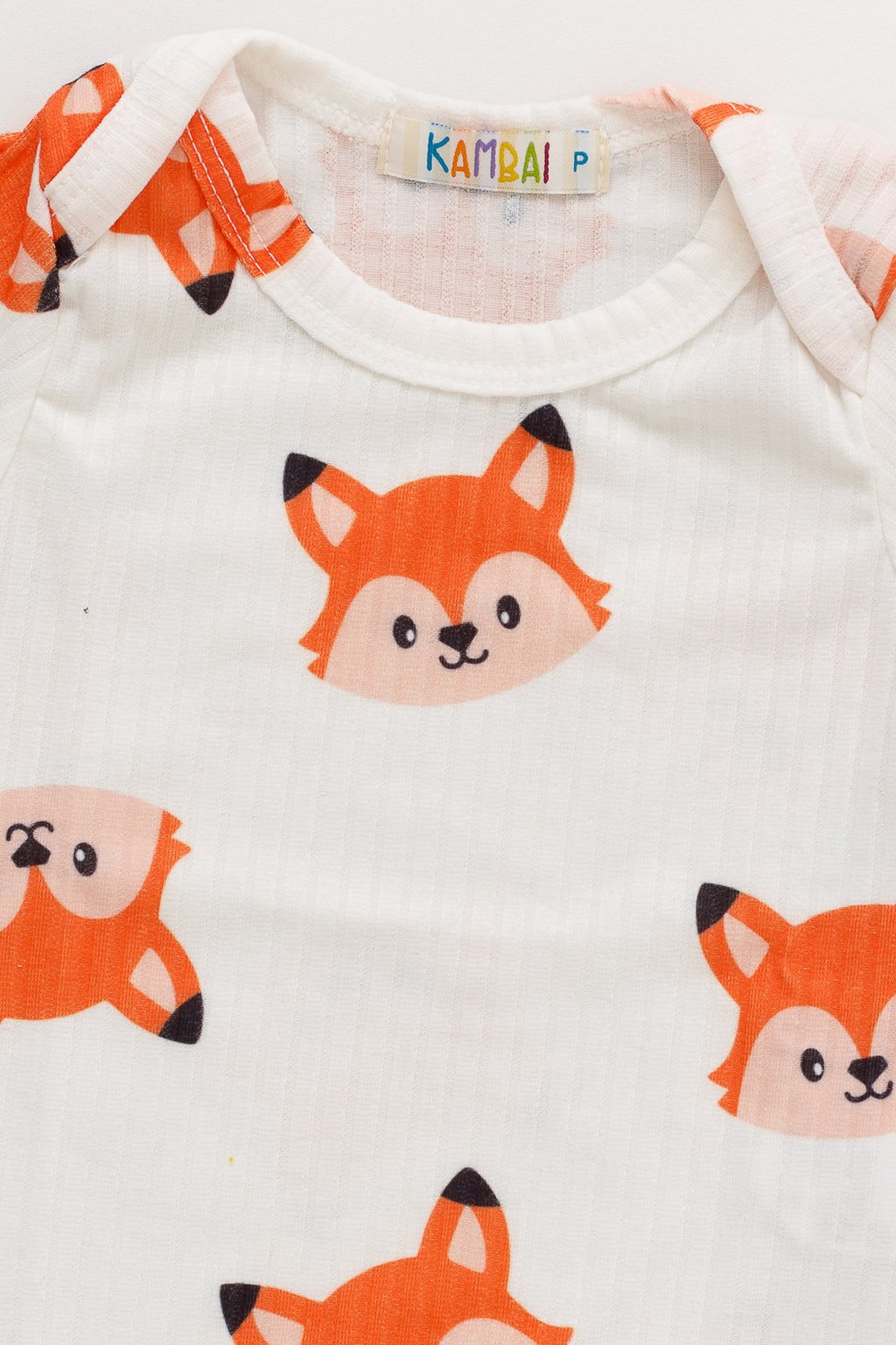 Body Bebê Manga Curta Canelado Estampa Raposa