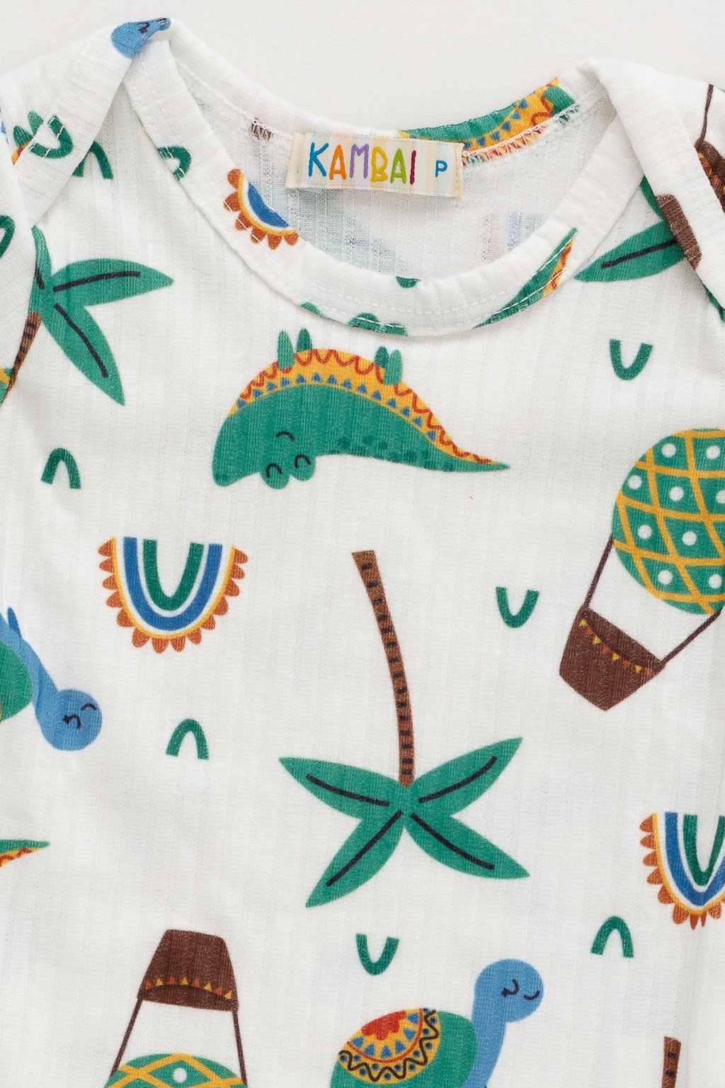 Body Bebê Manga Curta Canelado Estampa Tropical Jacaré