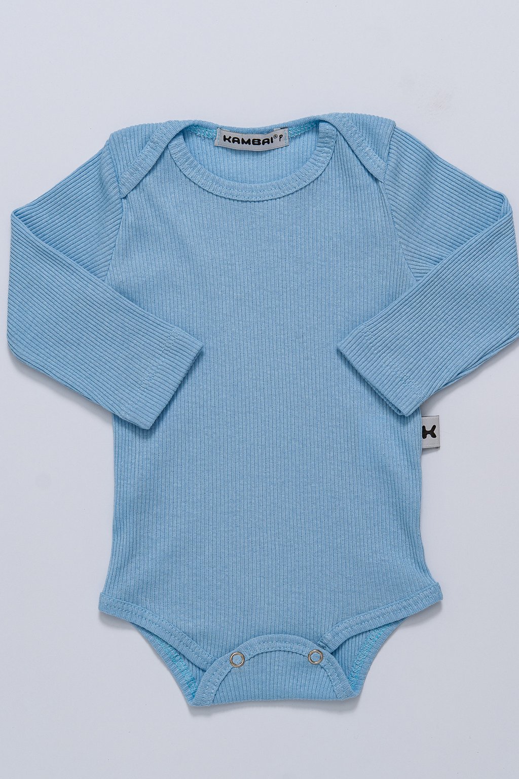 Body Bebê Manga Longa Canelado Liso Azul Claro