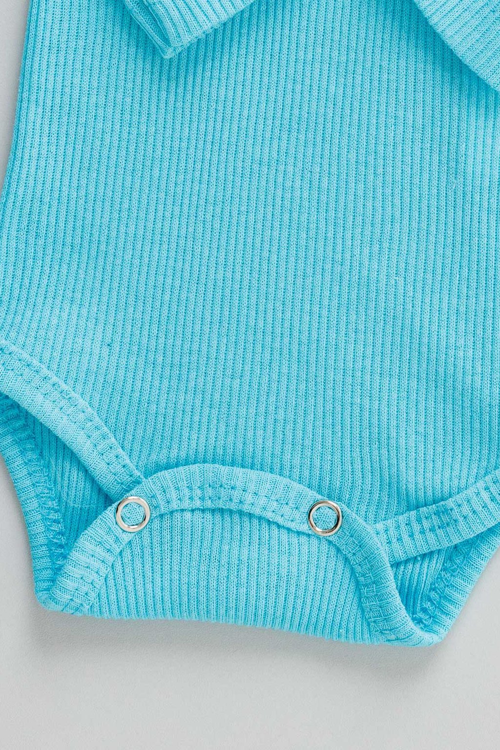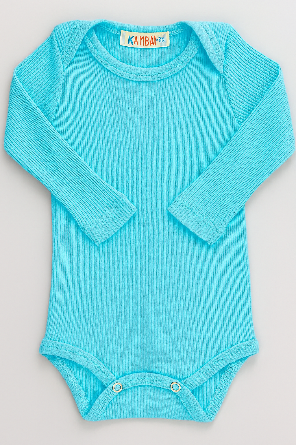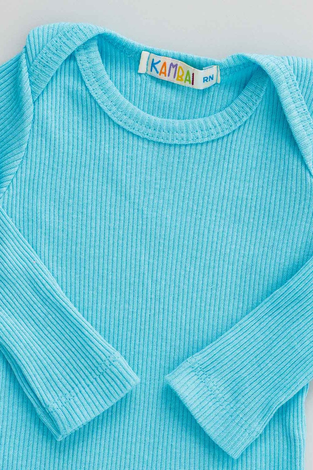 Body Bebê Manga Longa Canelado Liso Azul Caribe