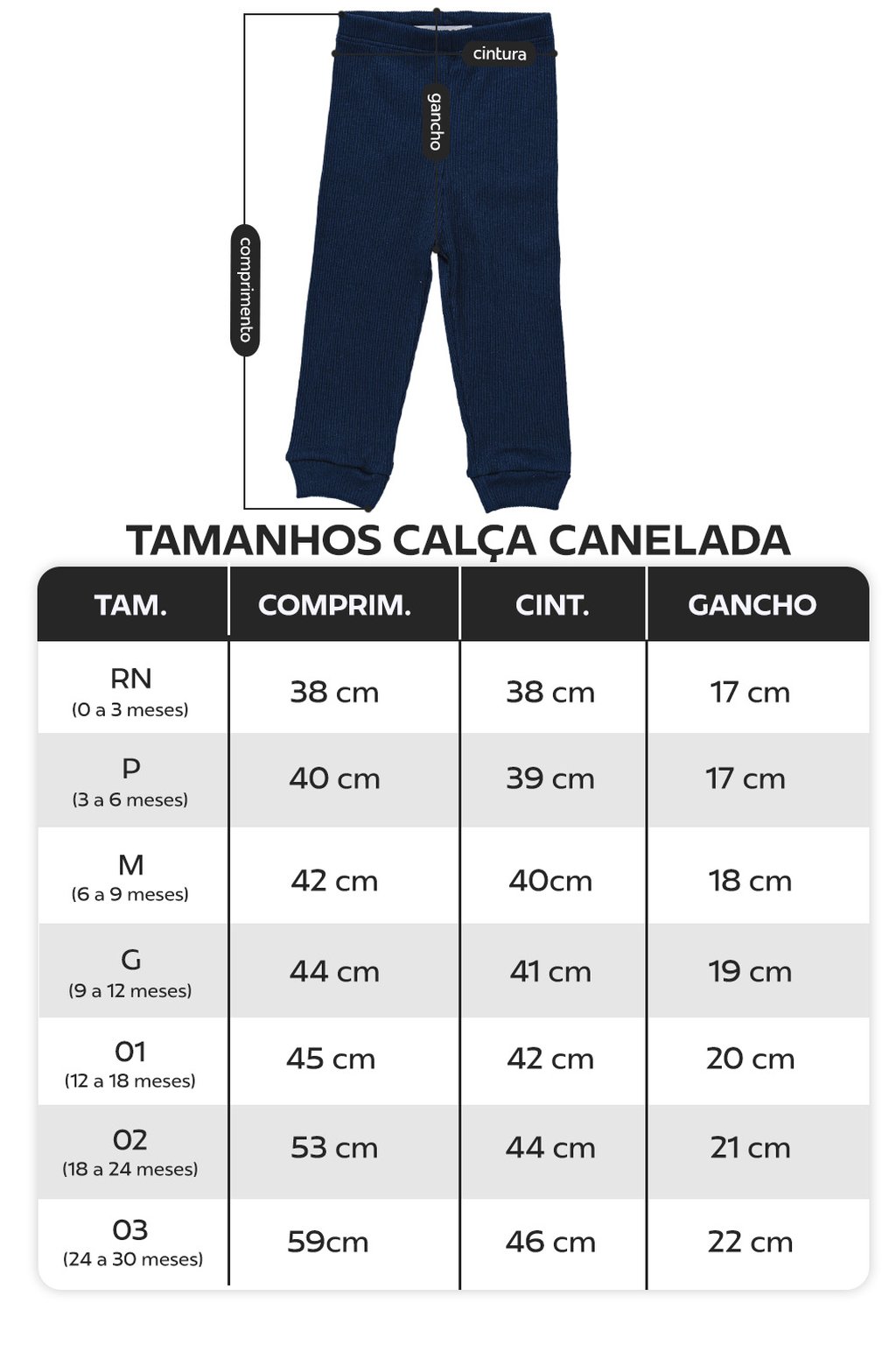 Muitas mamães utilizam a calça e o body canelado de algodão embaixo do macacão e das outras roupinhas do bebê. É fabricada em malha canelada 100% algodão, possui cós com elástico e punho nas perninhas.