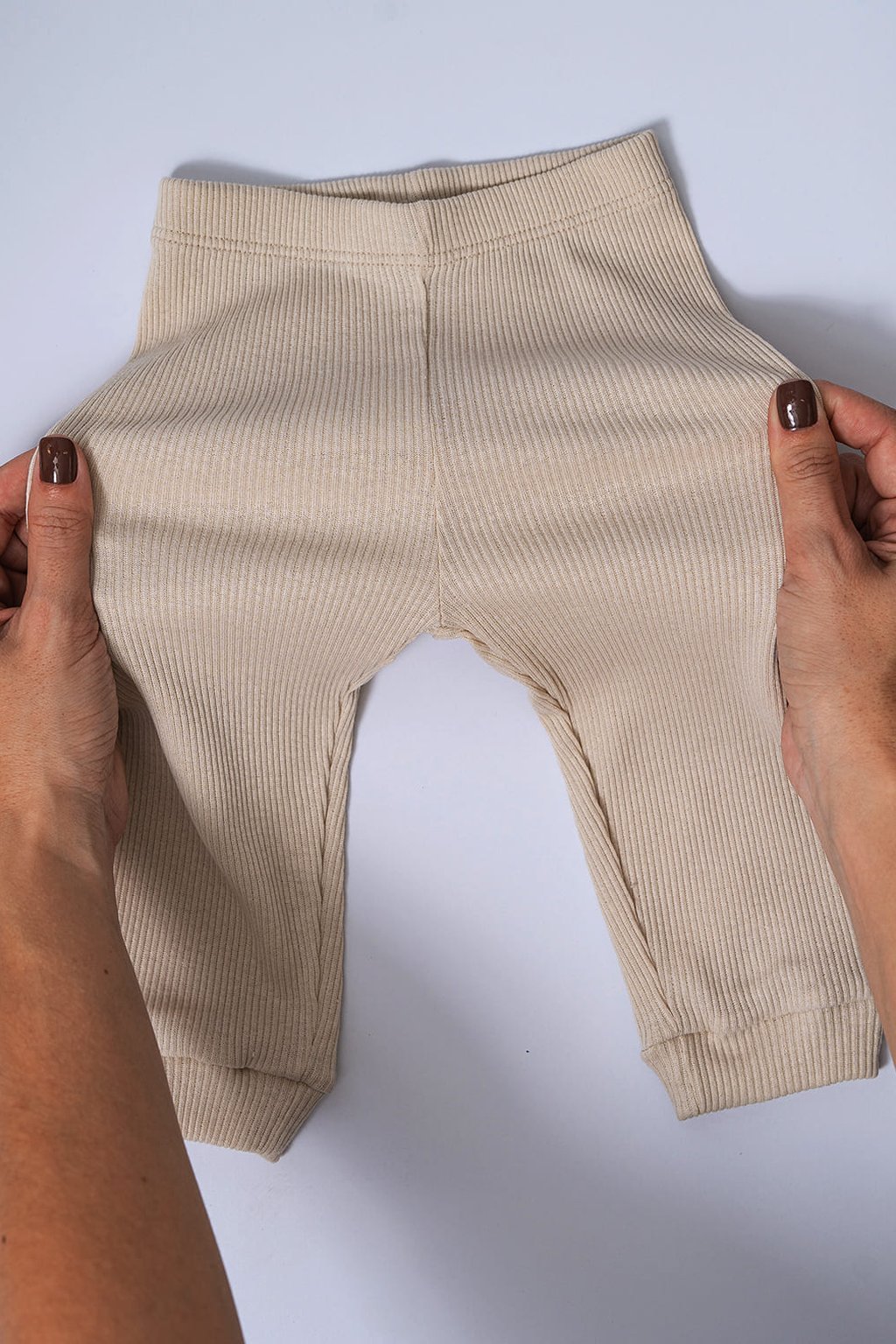 Muitas mamães utilizam a calça e o body canelado de algodão embaixo do macacão e das outras roupinhas do bebê. É fabricada em malha canelada 100% algodão, possui cós com elástico e punho nas perninhas.
