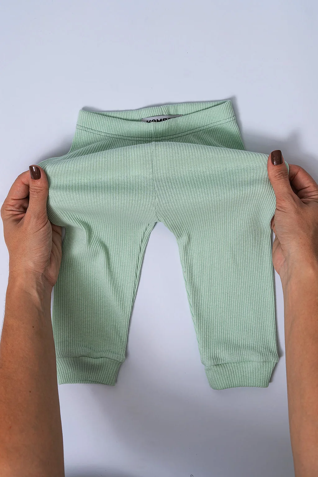 Muitas mamães utilizam a calça e o body canelado de algodão embaixo do macacão e das outras roupinhas do bebê. É fabricada em malha canelada 100% algodão, possui cós com elástico e punho nas perninhas.