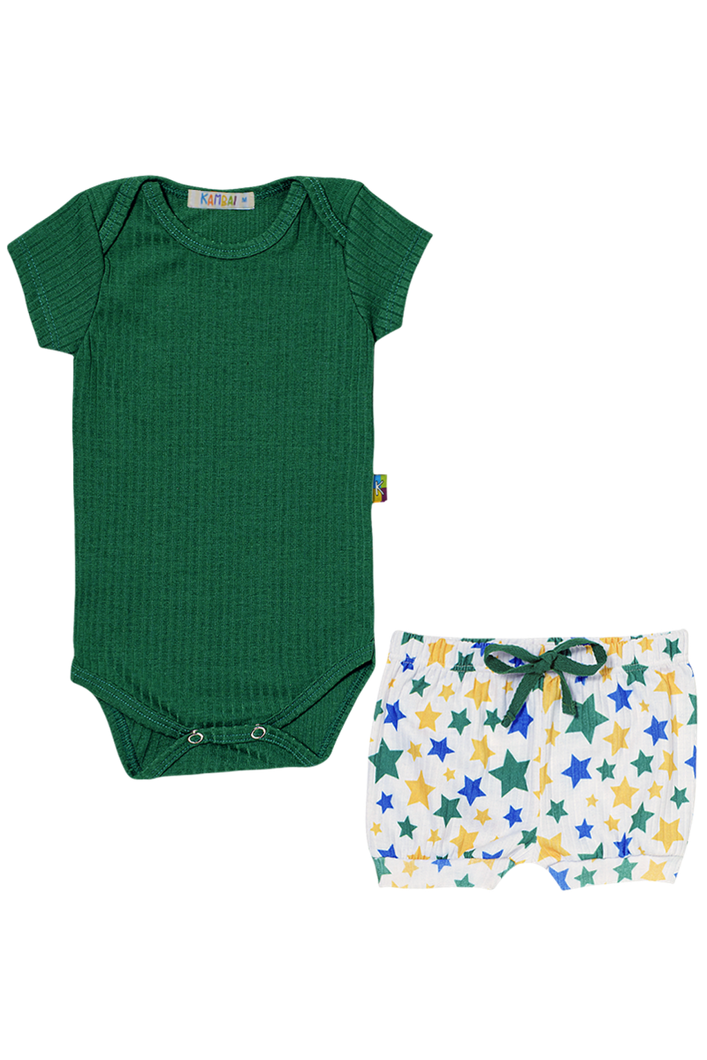 Conjunto Body Colorido e Shorts Estampado Estrelas Brasil