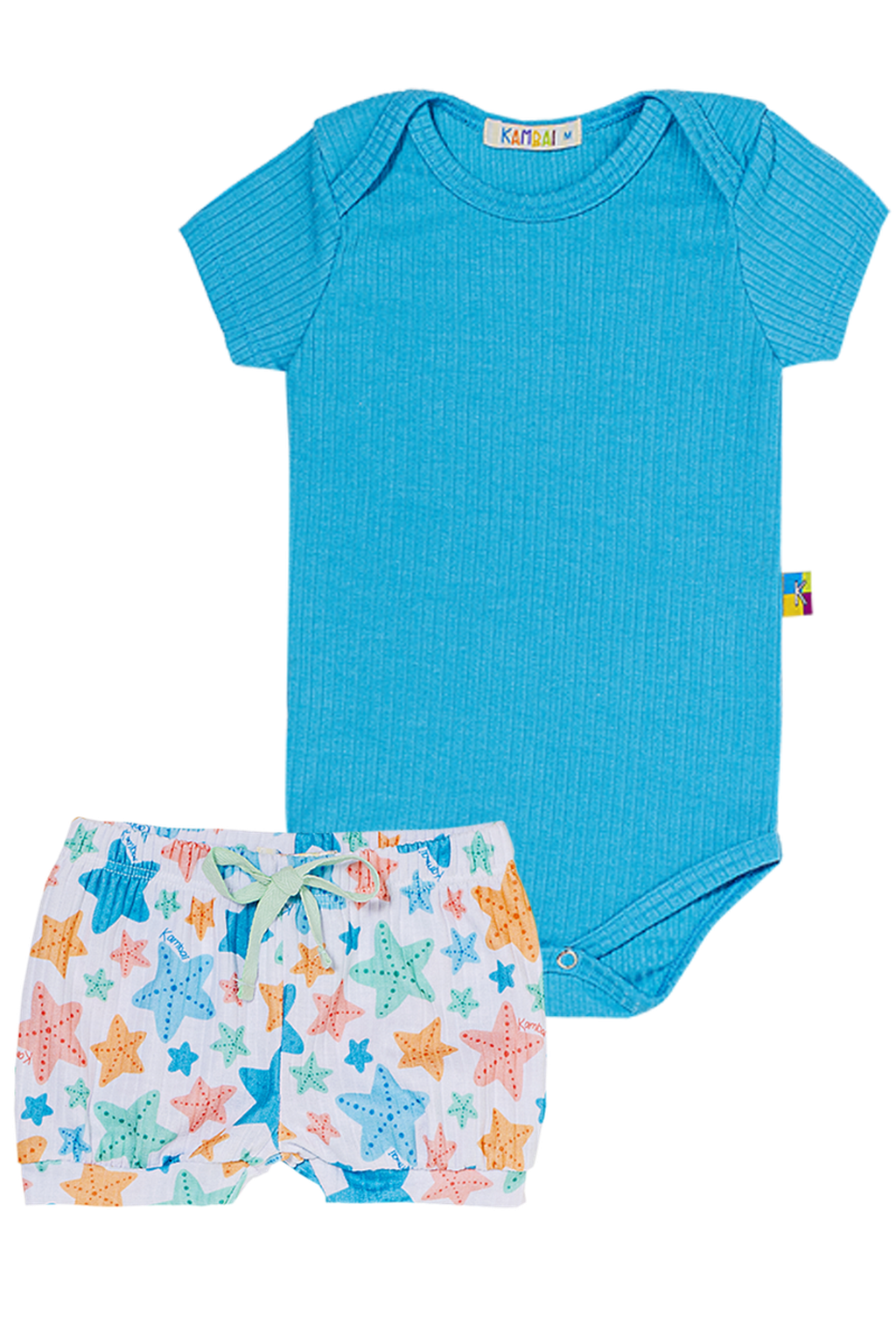 Conjunto Body Colorido e Shorts Estampado Estrelas do Mar