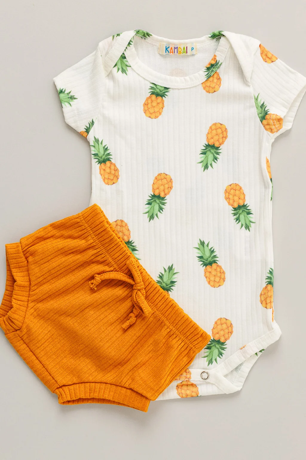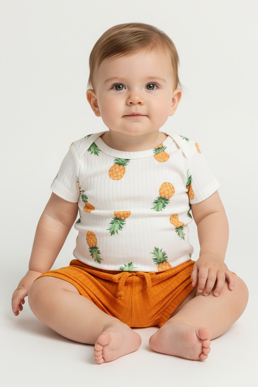 O Conjunto de Body Abacaxi com Tapa Fralda foi criado para unir conforto, delicadeza e praticidade em uma composição completa para o bebê. O tecido é macio, flexível e respirável, proporcionando ajuste suave ao corpinho e liberdade total de movimentos ao longo do dia.