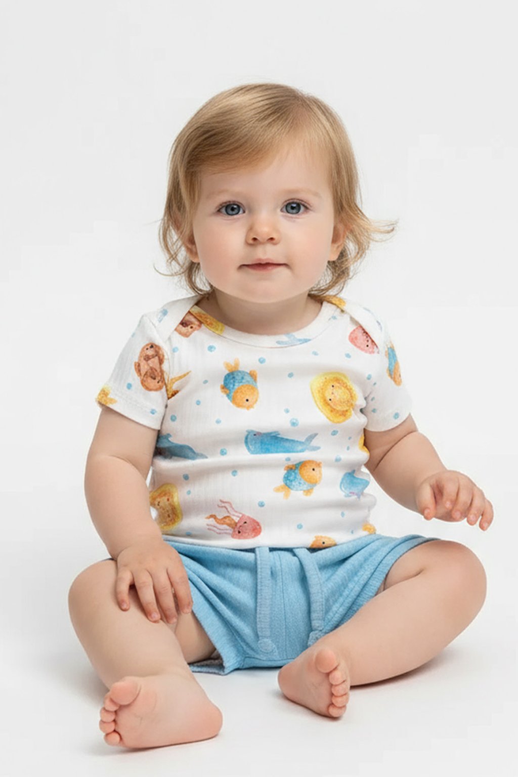 Essencial no enxoval, nosso Conjunto Body Estampado Animais Marinhos Oceano e Tapa Fralda une qualidade e conforto para o seu baby brincar livremente no verão! O body possui botões de pressão entre as pernas e gola envelope para facilitar a troca de fraldas, já o short é um verdadeiro charminho, possui cordão central e elástico na cintura para trazer ainda mais comodidade ao neném. A estampa divertida é unissex e pode ser uma ótima opção de presente para chá revelação.