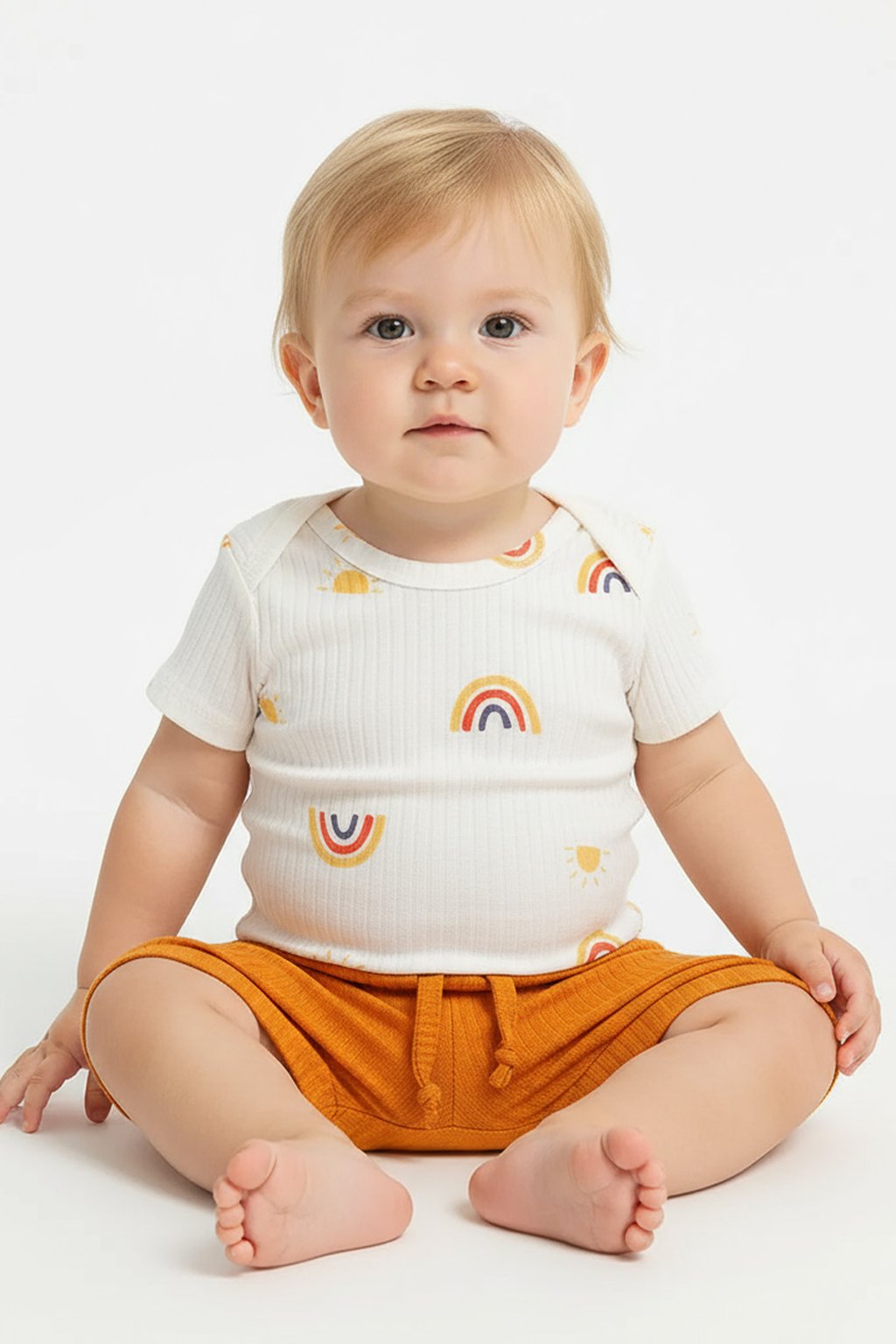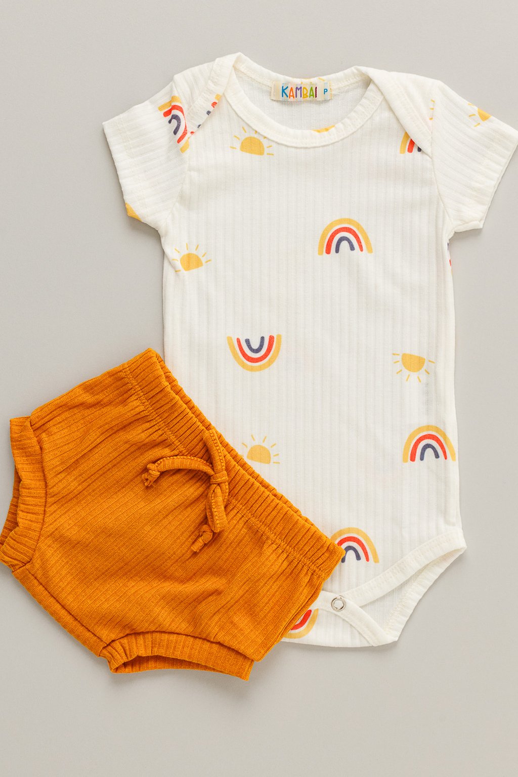 Conjunto Body Estampado Arco Iris Sol e Tapa Fralda