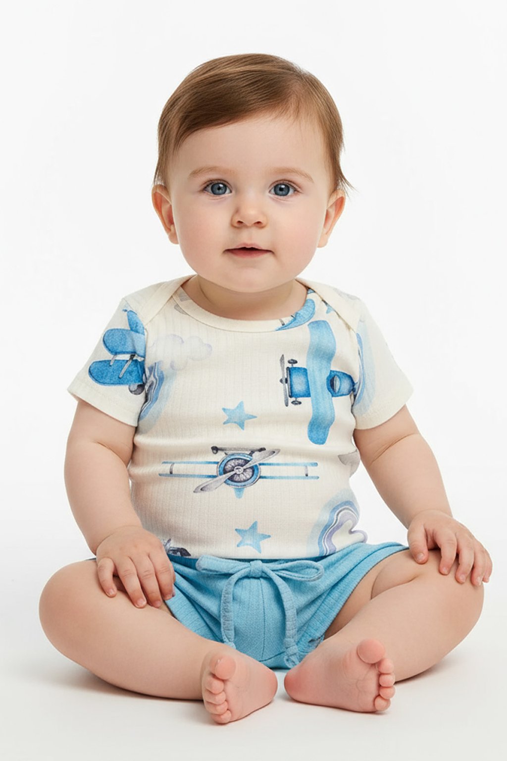 Essencial no enxoval, nosso Conjunto Body Estampado Avião e Tapa Fralda une qualidade e conforto para o seu baby brincar livremente no verão! O body possui botões de pressão entre as pernas e gola envelope para facilitar a troca de fraldas, já o short é um verdadeiro charminho, possui cordão central e elástico na cintura para trazer ainda mais comodidade ao neném. A estampa divertida é unissex e pode ser uma ótima opção de presente para chá revelação.