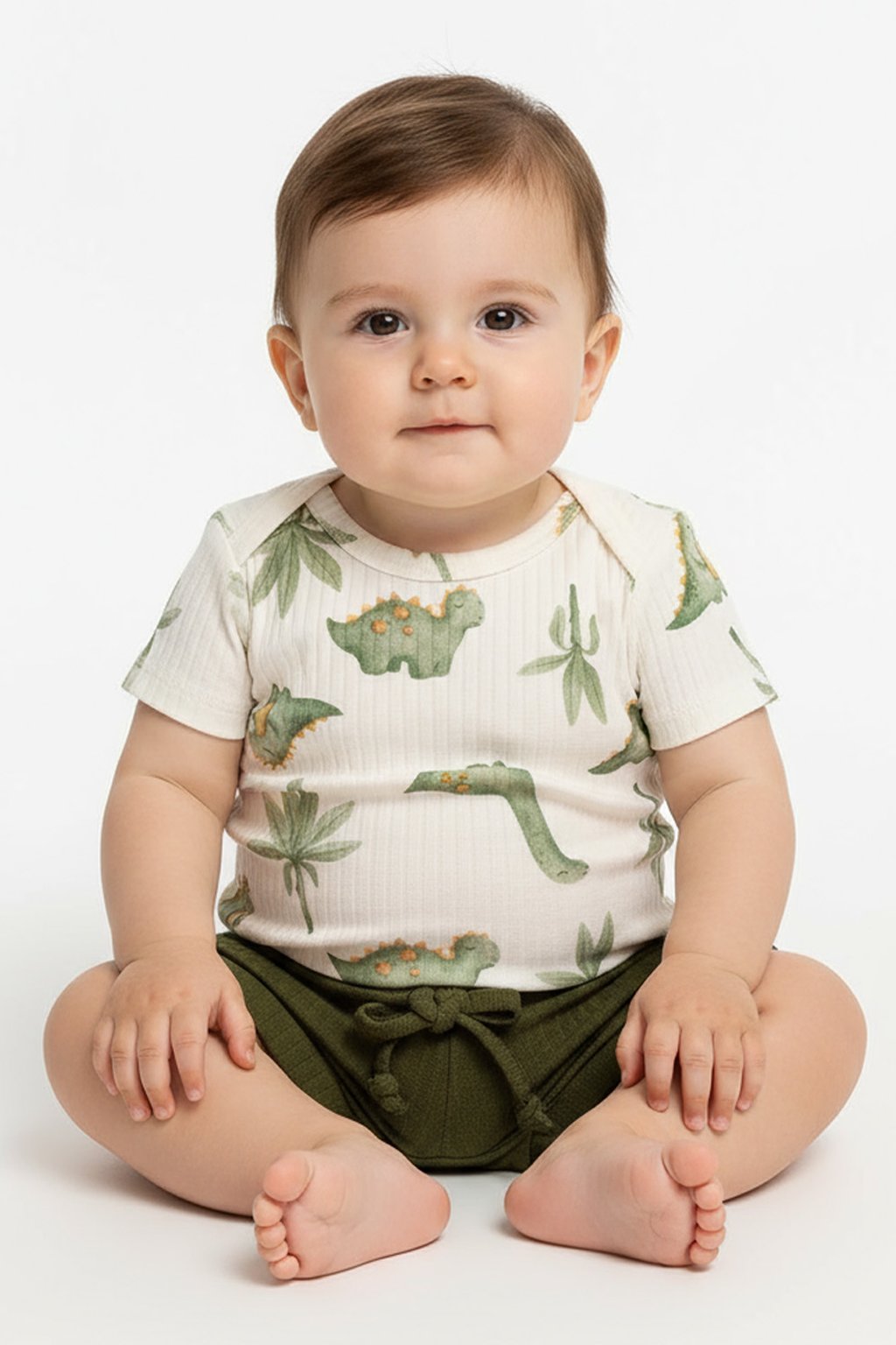 O Conjunto de Body Dinossauro Tropical com Tapa Fralda foi criado para unir conforto, delicadeza e praticidade em uma composição completa para o bebê. O tecido é macio, flexível e respirável, proporcionando ajuste suave ao corpinho e liberdade total de movimentos ao longo do dia.