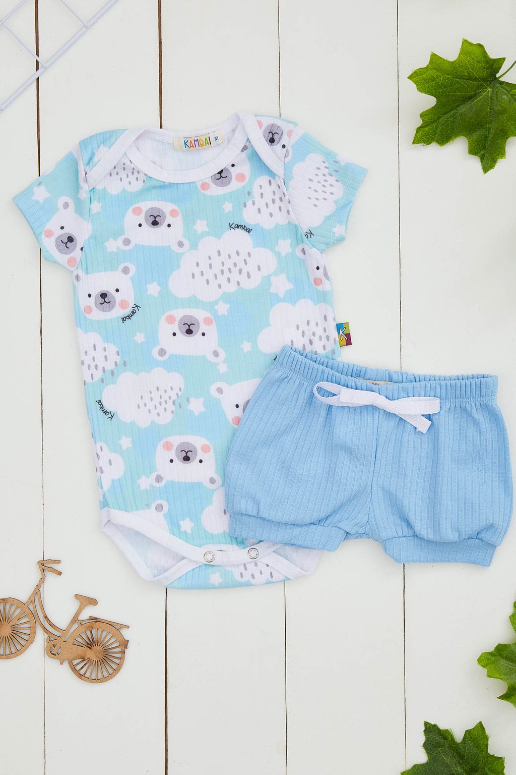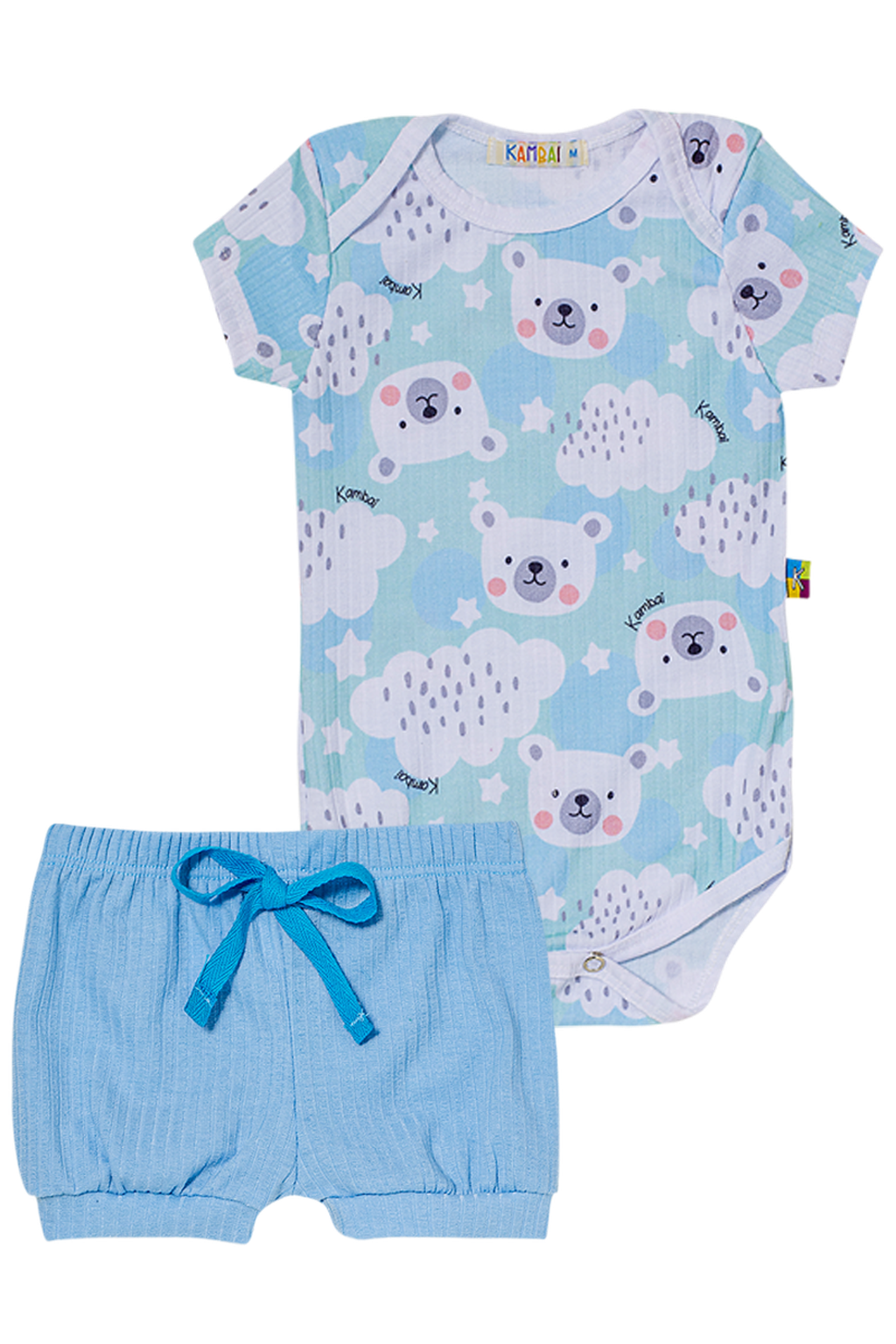 Conjunto Body Estampado e Shorts Colorido Urso Polar