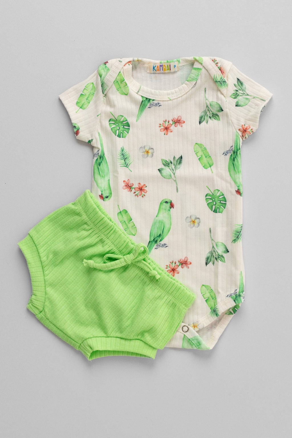 Conjunto Body Estampado Papagaio e Tapa Fralda