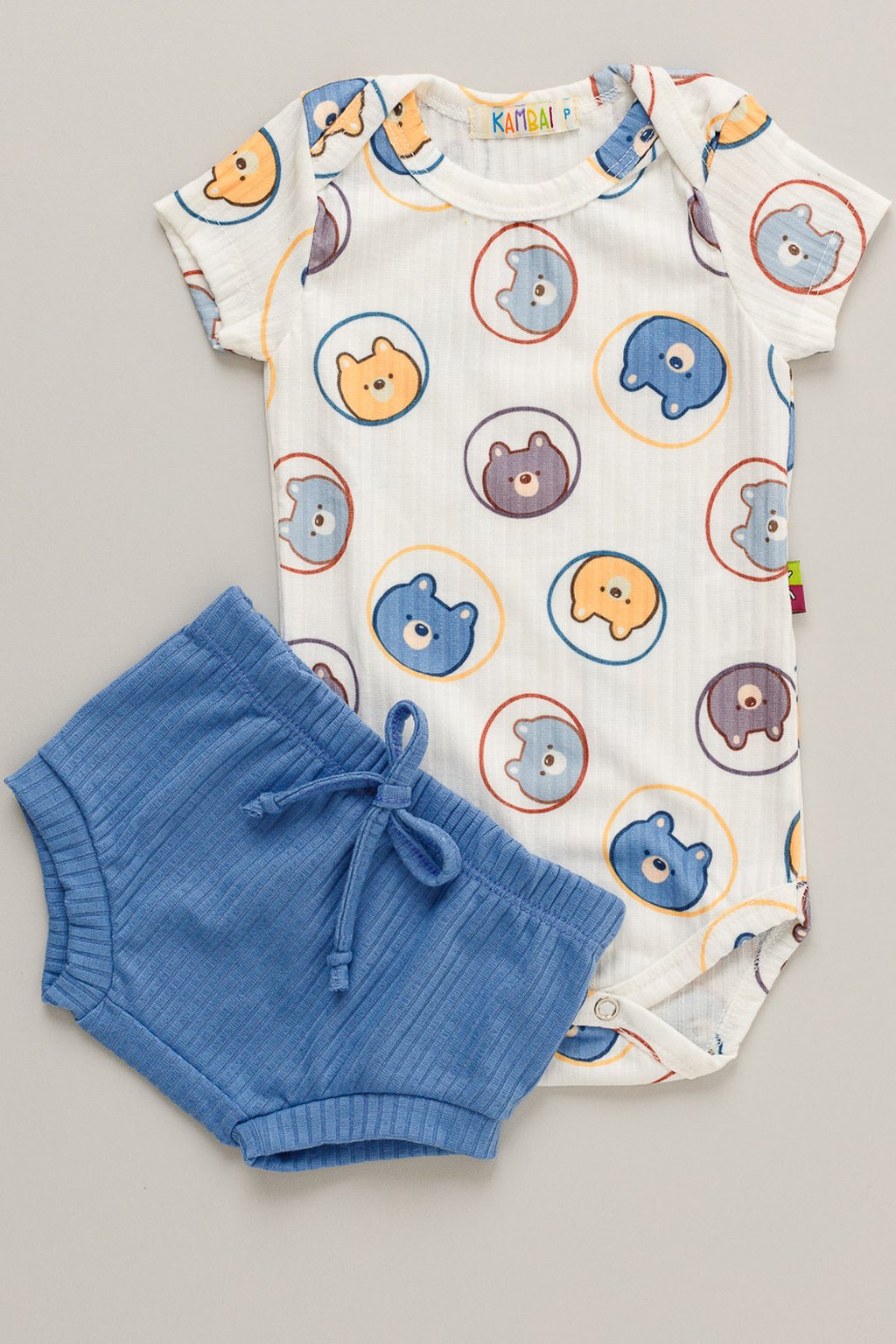 Detalhes: Body com botões de pressão entrepernas e gola envelope. Short tapa fralda com elástico na cintura.