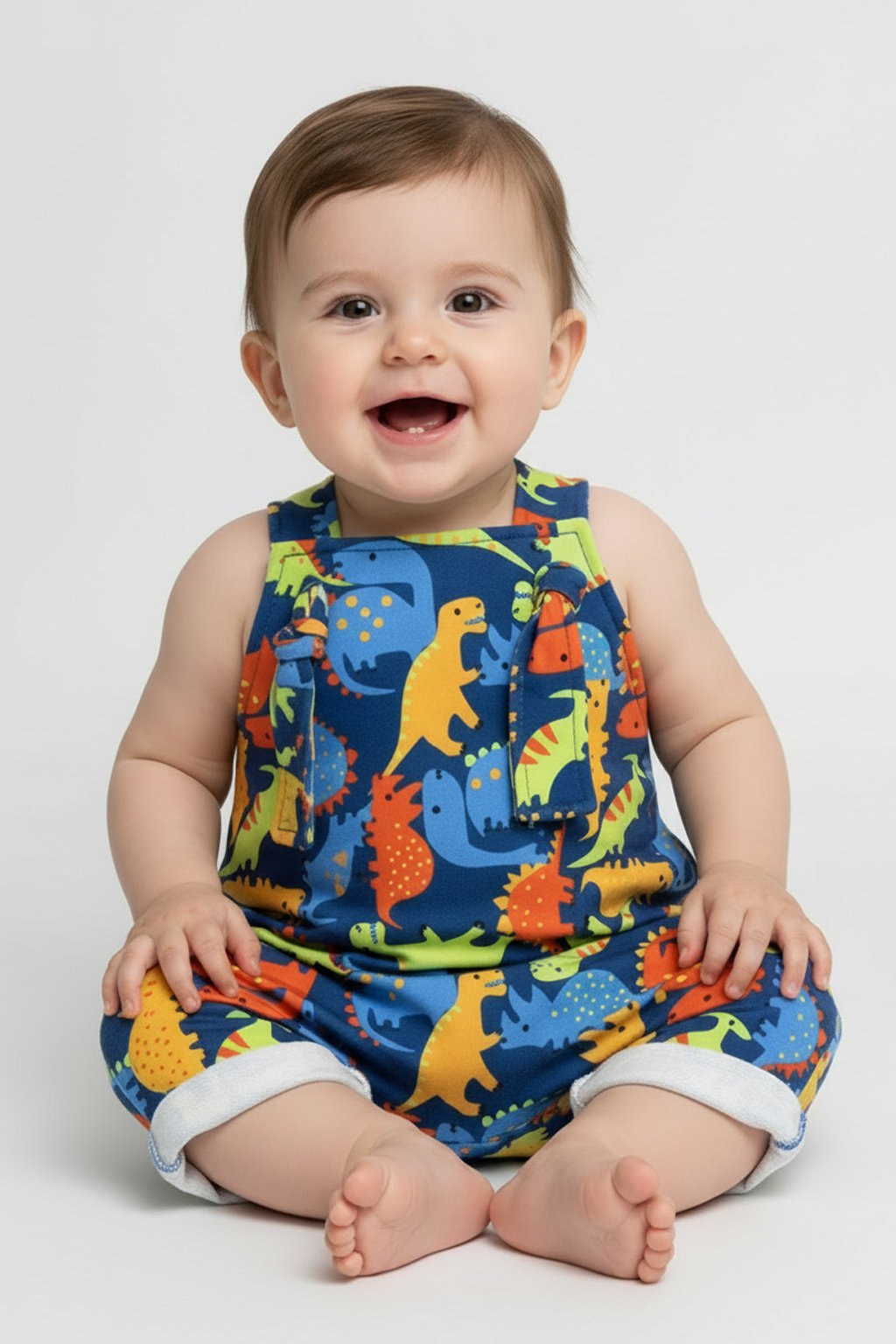 A Jardineira Jurassic Dino possui delicadeza no visual, conforto no vestir e praticidade no dia a dia. Ela foi pensada para acompanhar o bebê com leveza e liberdade de movimentos, respeitando cada fase do desenvolvimento com um caimento suave e confortável.