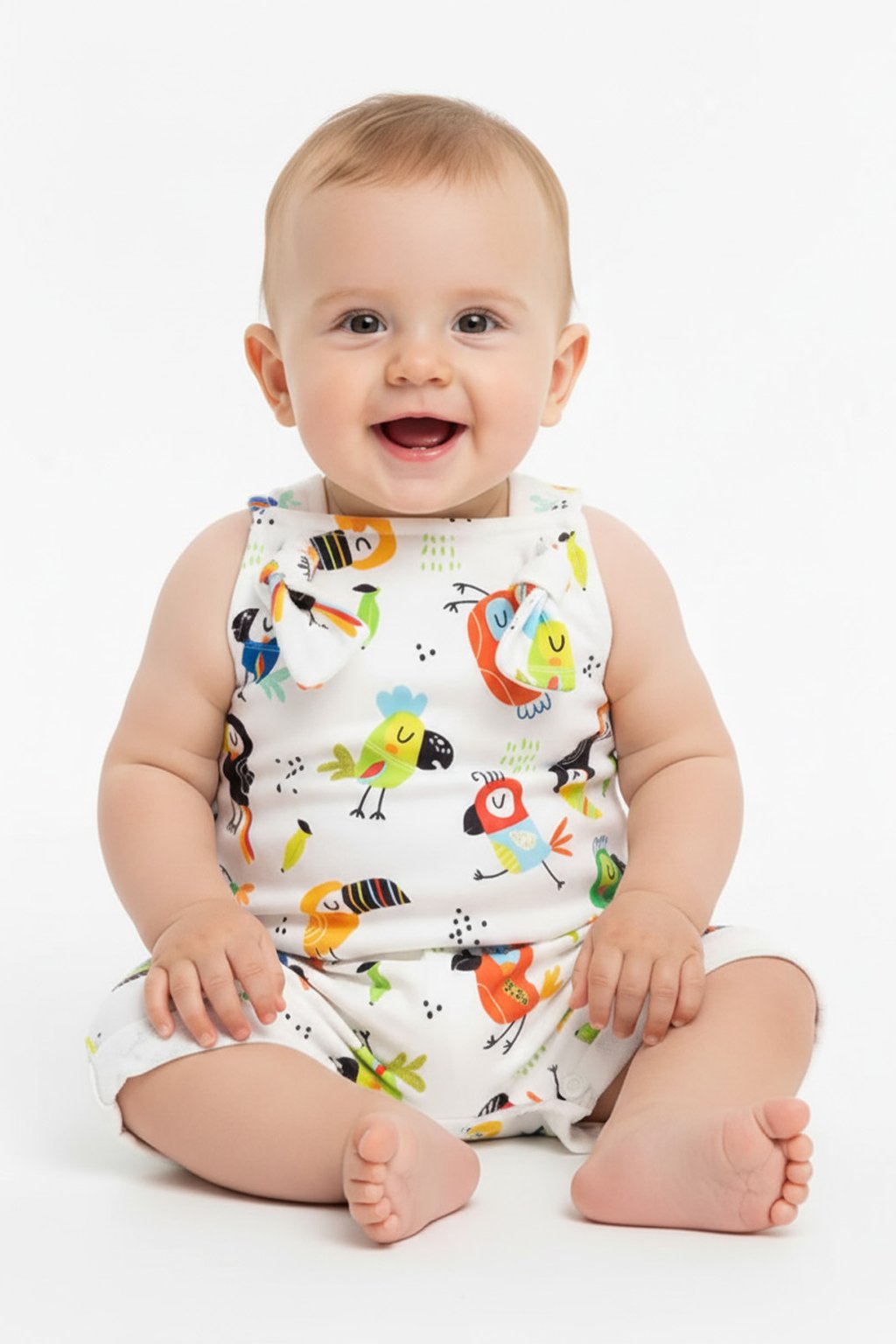 A Jardineira Pássaros possui delicadeza no visual, conforto no vestir e praticidade no dia a dia. Ela foi pensada para acompanhar o bebê com leveza e liberdade de movimentos, respeitando cada fase do desenvolvimento com um caimento suave e confortável.