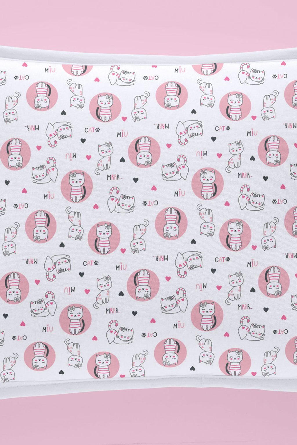 Jogo de Cama Bebê 2 Peças - Lençol Liso e Fronha Estampada Gatinhos