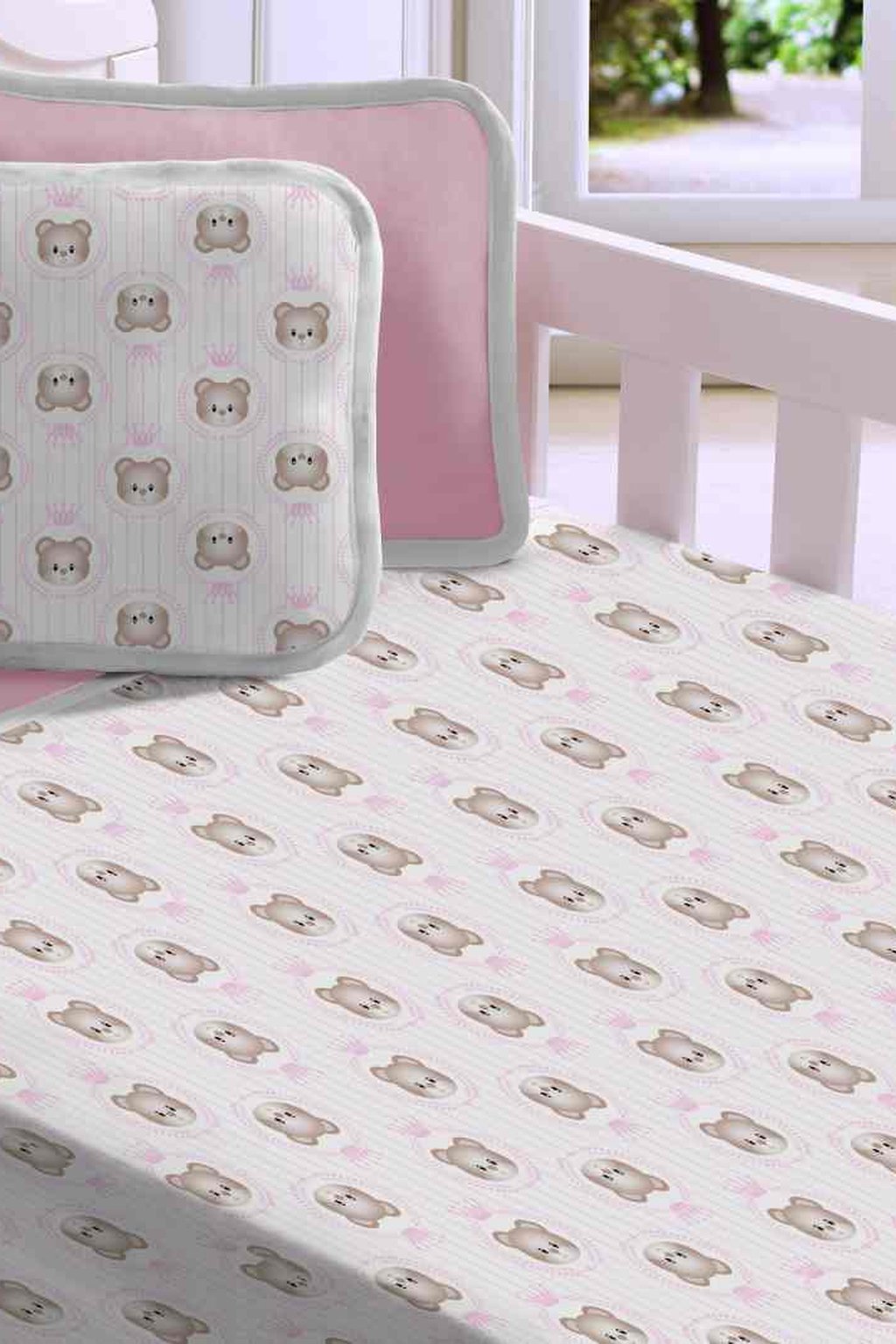 Jogo de Cama Bebê 3 Peças - Lençol Liso, Fronha Estampada e Sobre Lençol Estampado Urso Rosa