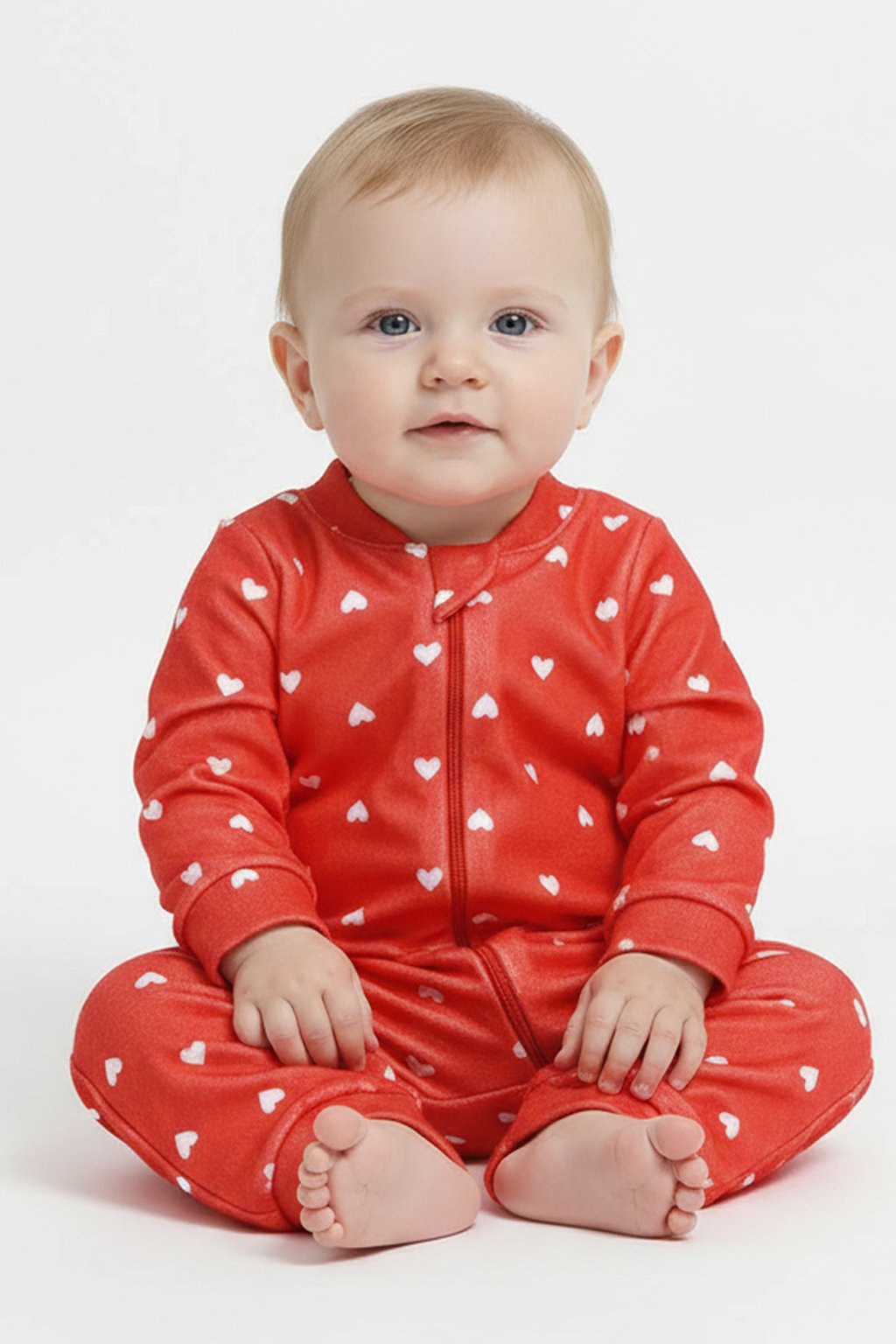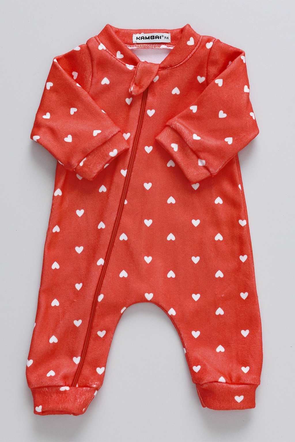 Macacão Bebê Soft Longo - Corações Vermelho