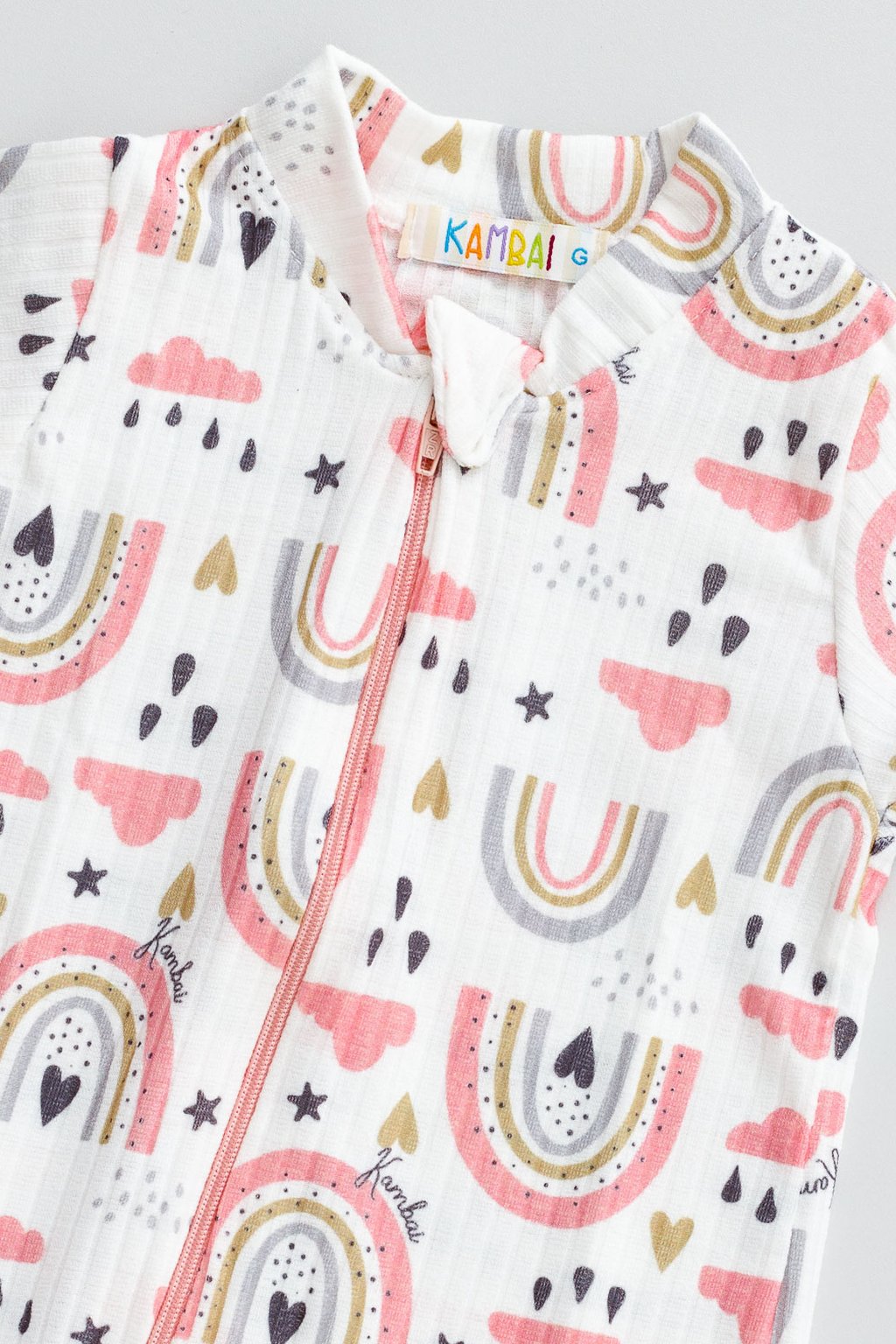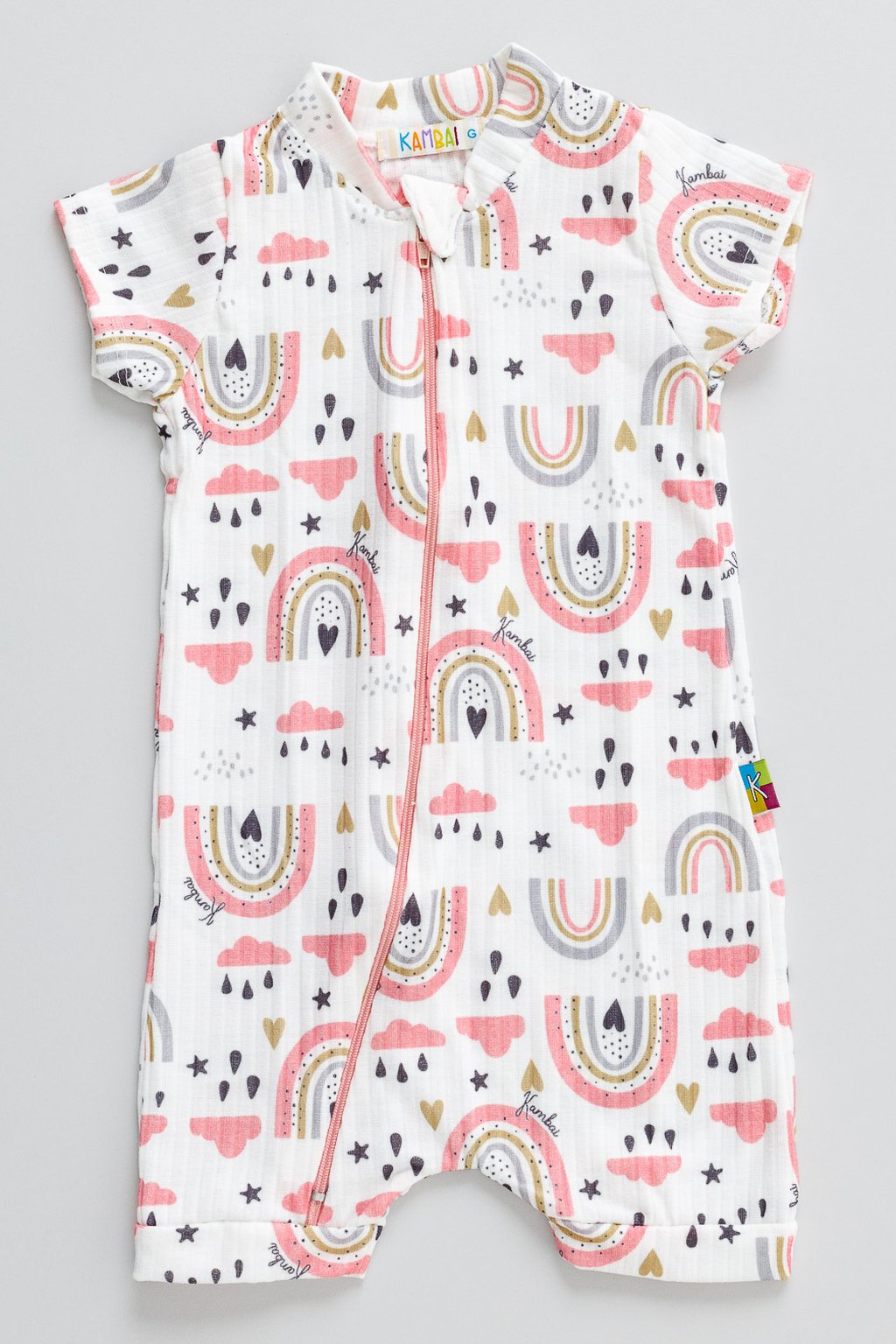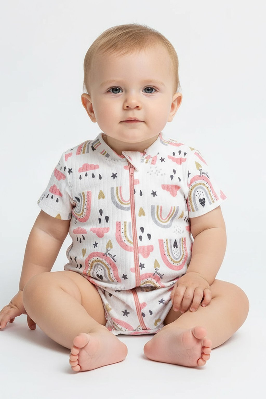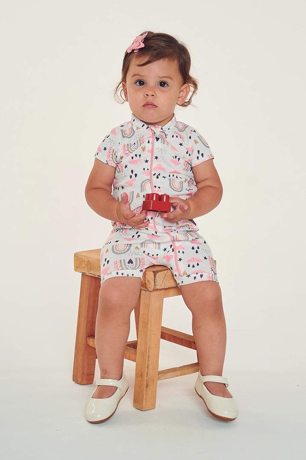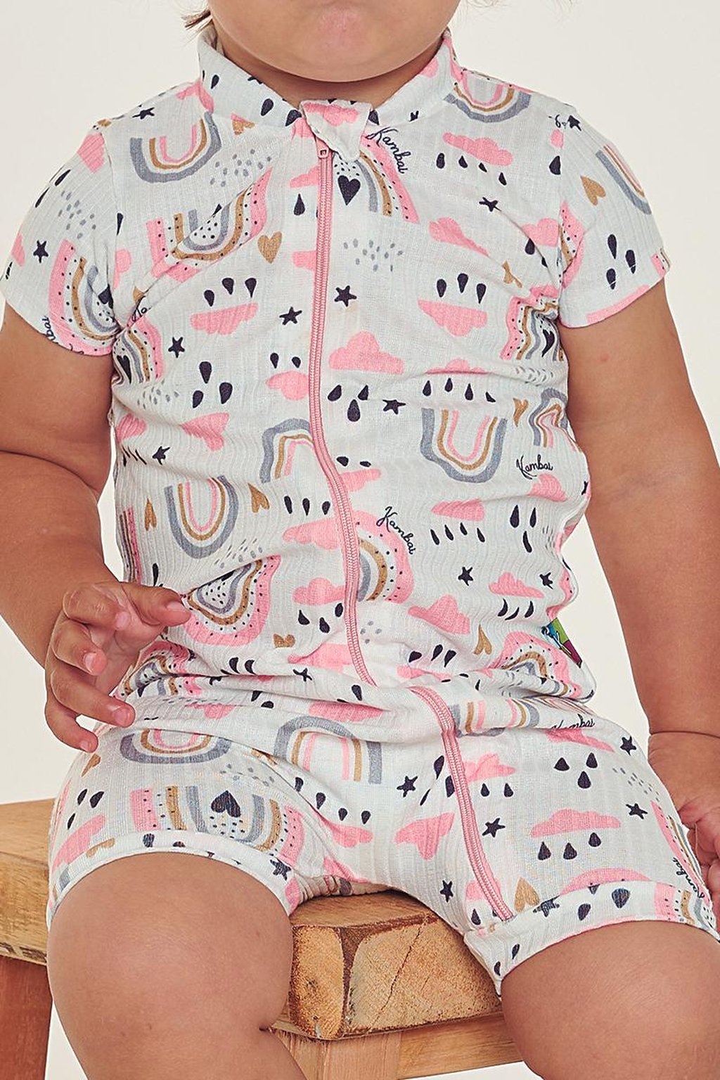 Macacão Bebê Curto de Malha Canelado Arco Íris